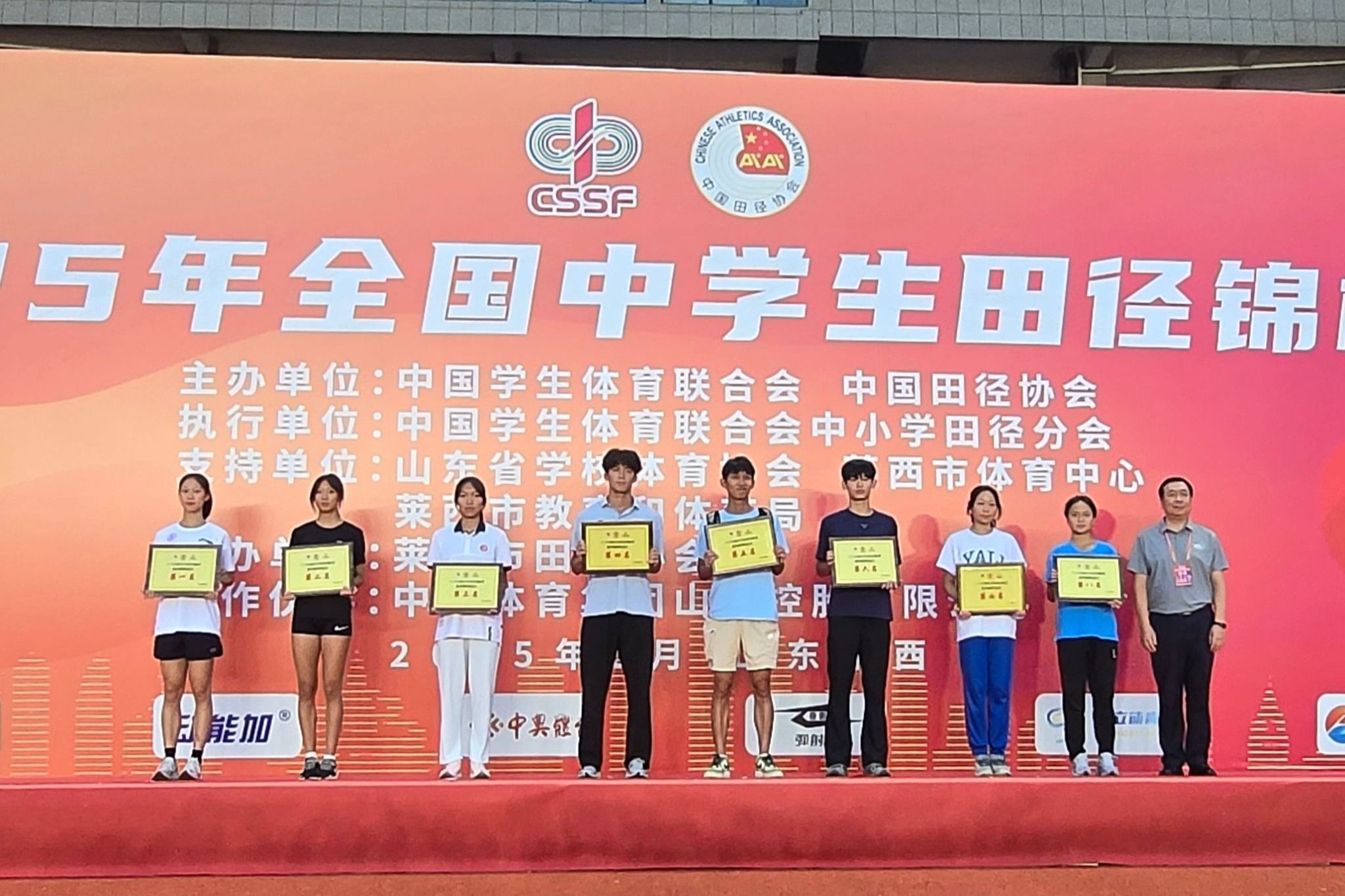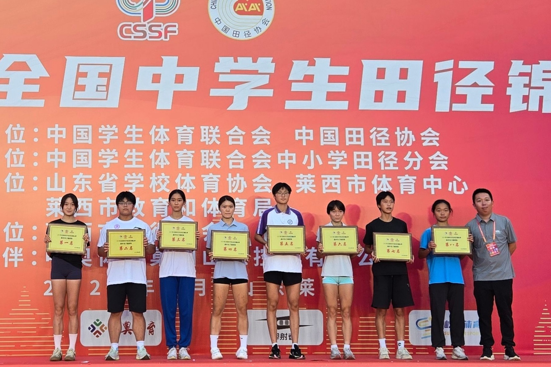 2025年全国中学生田径锦标赛于8月20日—8月26日在山东省莱西市体育中心举行。本次比赛中我校高中组以144分的成绩获得团体总分第一名。