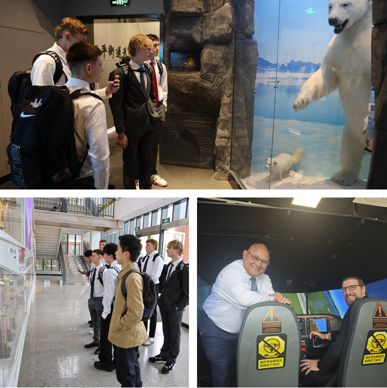美国师生参观标本馆、体育馆荣誉墙、在牛顿飞行学院体验