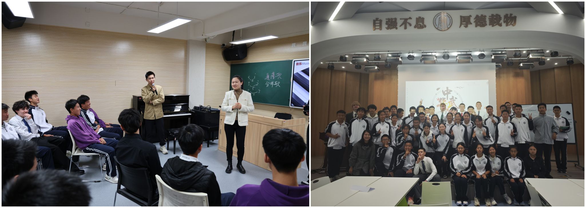 美国访问团师生先后参观体育馆荣誉墙、标本馆、牛顿飞行学院等标志性场馆,随后旁听贺晓宇老师的音乐课与周小熙老师的英语课,在旋律与语言的交融中体验中国校园课堂氛围。场馆参观到课堂体验,每一个环节都让美国师生真切体会到清华附中“培养具有家国情怀、强健体魄、丰盈内心、国际视野的拔尖创新人才” 的育人目标,也让这所百年名校的教育温度,通过近距离接触传递到每一位来访者心中。