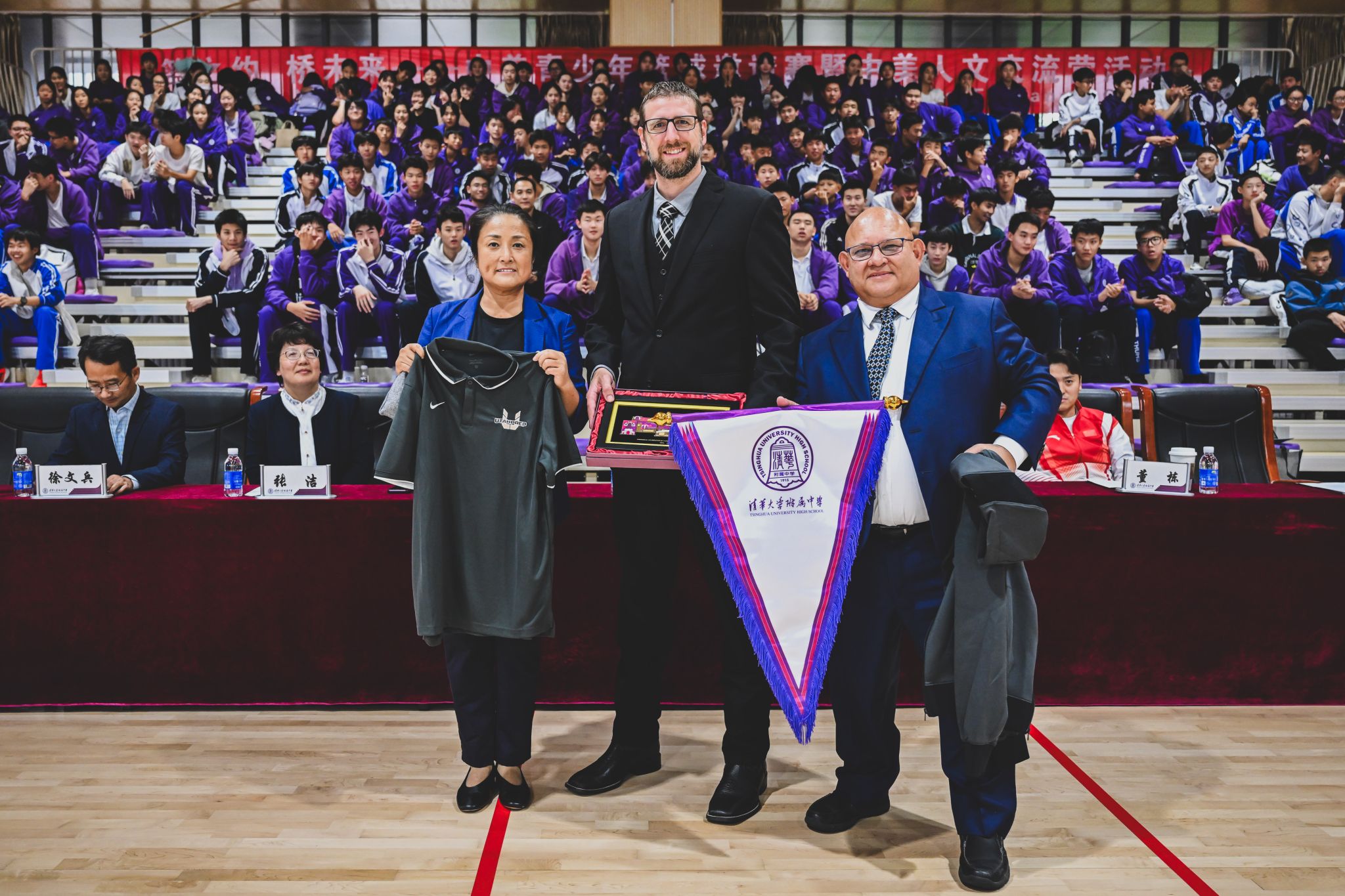 为落实习近平主席“五年五万”重大倡议、深化中美青少年人文交流,清华附中在迎来建校110周年之际,10月9日至12日以首站北京站的身份,迎接美国犹他预科学院男子篮球队到访。本次访问是教育部中外人文交流中心组织的“中美青少年篮球邀请赛暨中美人文交流营”的活动之一。这场跨越太平洋的篮球之约,不仅是中美青少年以球会友、传递友谊的重要桥梁,更生动诠释了“无体育,不清华”的育人精髓,通过“以体育为媒促跨文化交流”的创新形式,为新时代基础教育领域的体教融合发展提供了鲜活范本。
